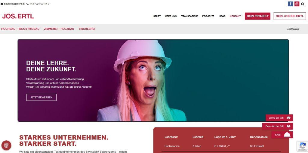 Durch den klaren Seitenaufbau, eine moderne Gestaltung und gezielte Call to Actions wird die Hürde zur Kontaktaufnahme bewusst niedrig gehalten. So unterstützt die Landingpage Josertl dabei, junge Talente anzusprechen, Orientierung zu geben und den Einstieg in die Lehrlingsausbildung so einfach wie möglich zu machen.