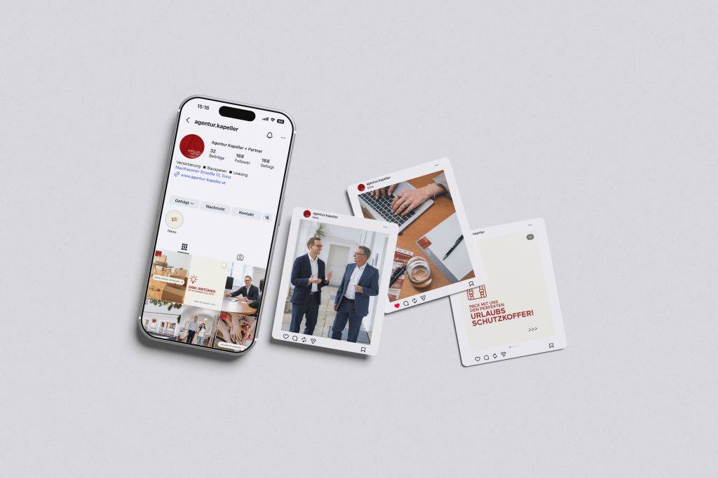 Für die Agentur Kapeller übernehmen wir die laufende Social Media Betreuung inklusive Contentplanung und Contentproduktion. Ziel ist es, komplexe Versicherungsthemen verständlich aufzubereiten und Vertrauen in die persönliche Beratung sichtbar zu machen.